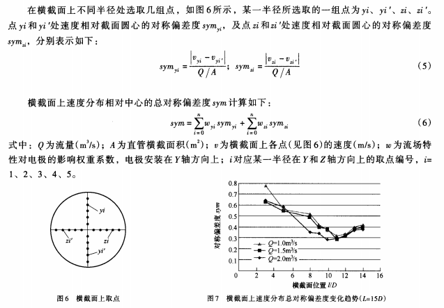 根據(jù)計算結果分析,盡管直管上并沒有速度完全中心軸對稱(速度總對稱偏差度為0)的用于安裝電磁流量計的理想位置,但是由于sym*小值較小,且延長直管長度后sym*小值變化很小,因此可以認為,在設計800mm內徑電磁流量計測量管路時,直管長度取12m可滿足電磁流量計的安裝和測量要求,但考慮到電磁流量計本身的長度,直管長度應在12m的基礎上適當加長。