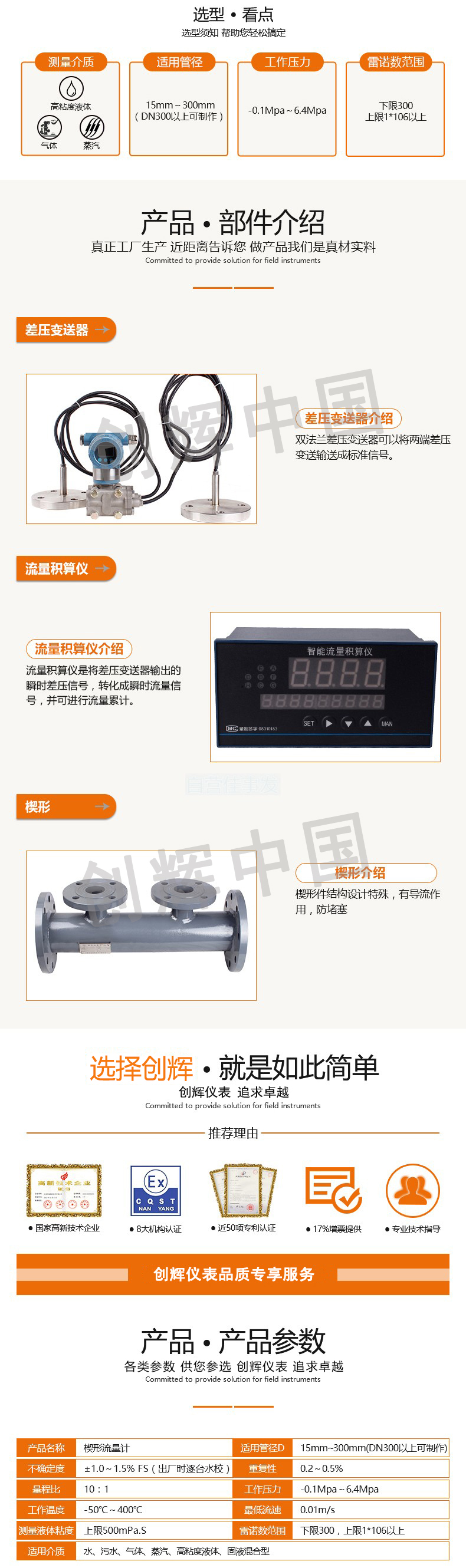 (6)分離型楔形流量計,可通過更換楔形件達(dá)到擴(kuò)展量程或改變量程的目的;