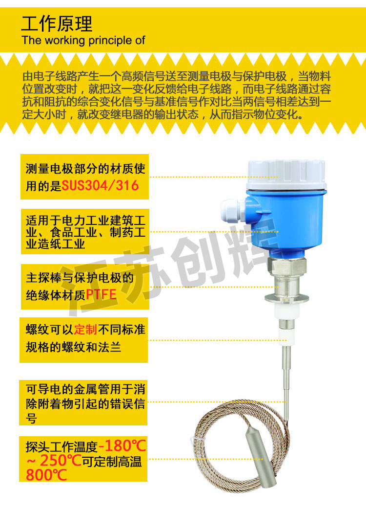 CH-CPDN11R纜繩型射頻導(dǎo)納料位開(kāi)關(guān):適用于大型罐體和料倉(cāng),采用垂直安裝的方式,有效避免物料的側(cè)面沖擊。