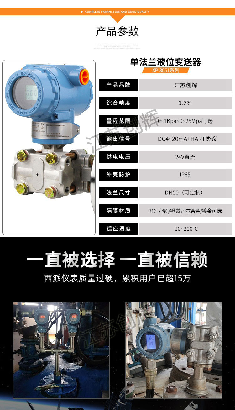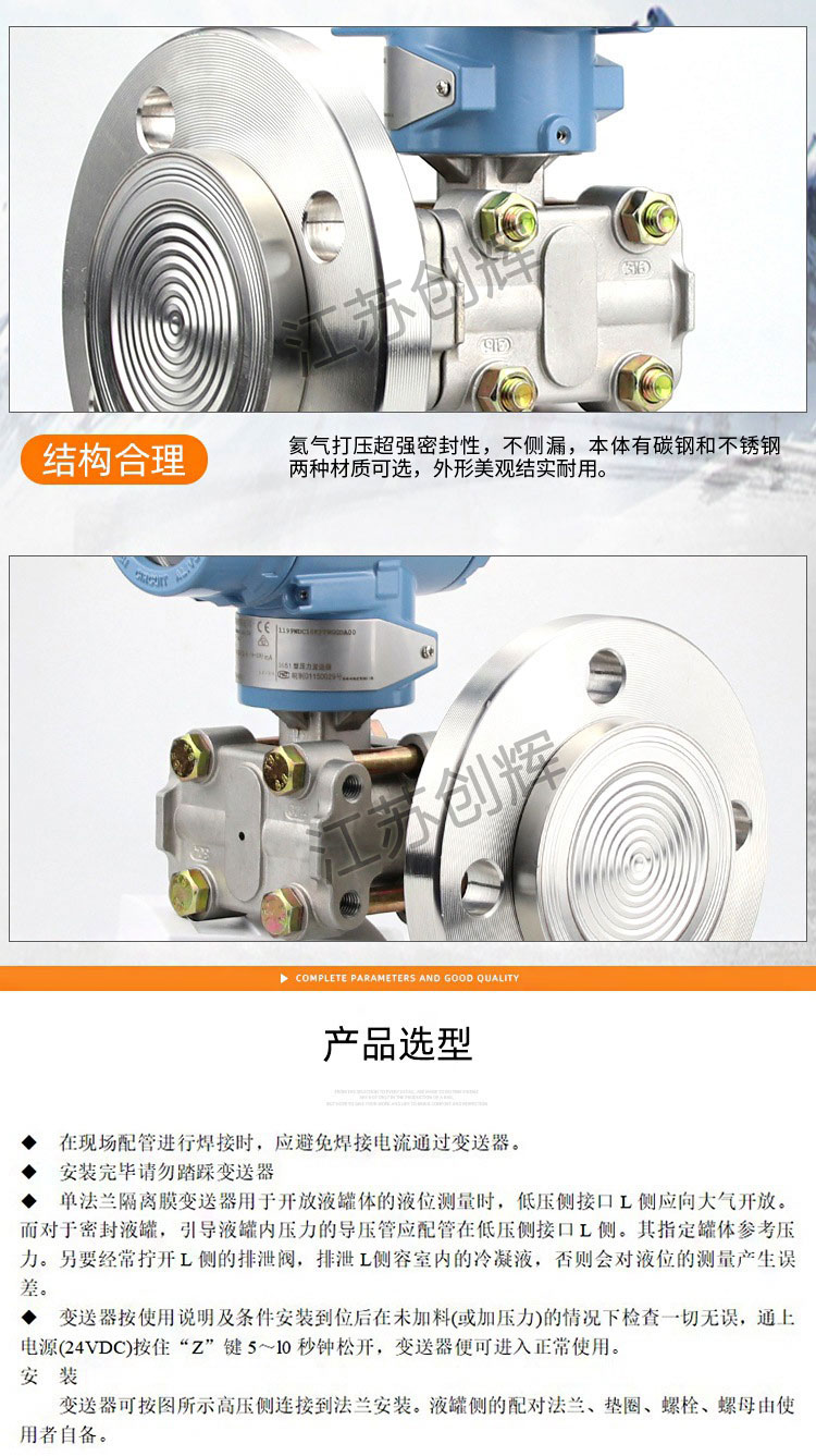2、316膜片、HC、鈦膜片多種選擇,世界上***采用H合金護(hù)套的傳感器(**技術(shù)),幫助單法蘭液位變送器實(shí)現(xiàn)了優(yōu)良的冷、熱穩(wěn)定性